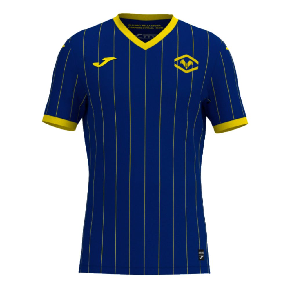 The gialloblu fans will continue to wear their representative colours once again: blue and yellow to support their club. For this occasion, an elegant yellow striped sublimation has been added. In the inner neck area, a legend has been added to commemorate the 40th anniversary of their first and only scudetto, with which they became champions of Italy: “THE ONLY ONES IN HISTORY ITALIAN CHAMPIONS 1984/1985”.