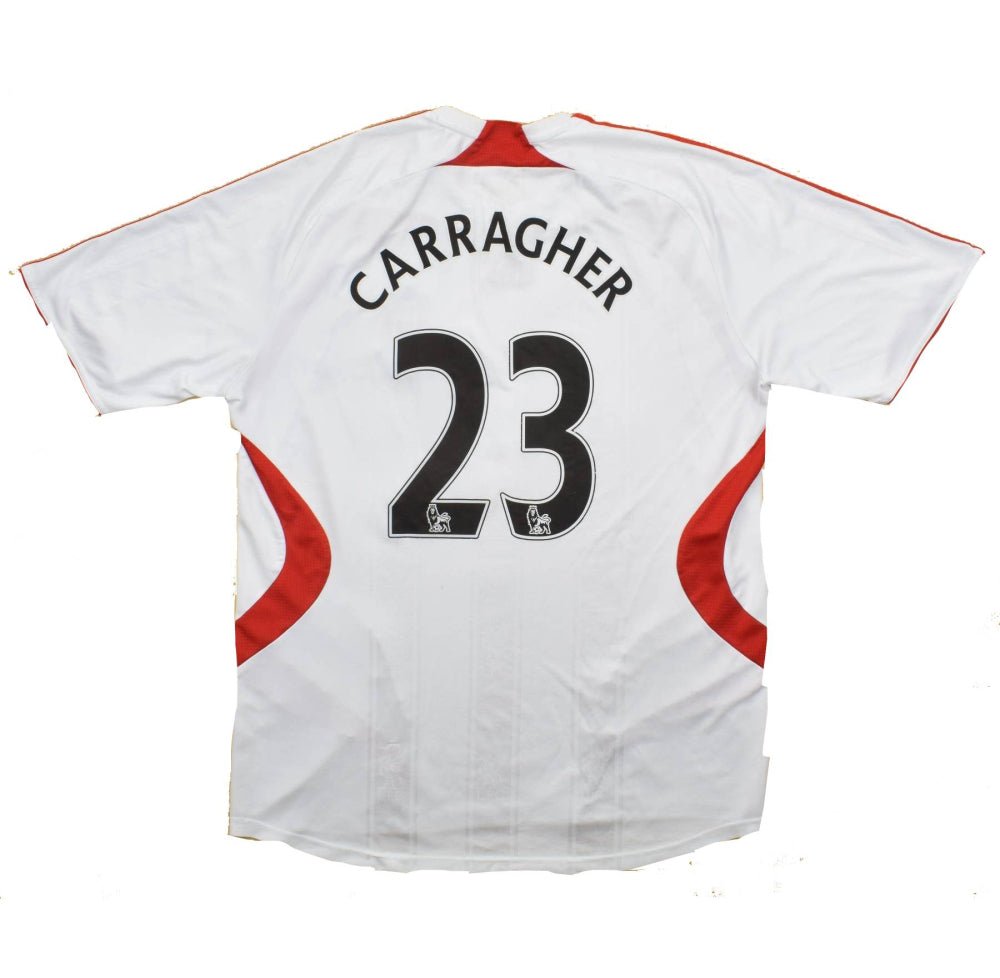 The Liverpool 2007-08 Away Shirt (Carragher #23) was worn by players such as Kewell, Alonso, Crouch, Carragher and Steven Gerrard as the team reached the Semi-finals of the UEFA Champions League and finished 4th in the Premier League.